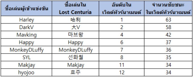 นอกจากนี้ com2uS ก็เผยรายชื่อผู้เข้าสู่รอบตัดสินของการแข่งขัน ‘Lost Centuria World Showdown’ ไปเป็นที่เรียบร้อยแล้ว