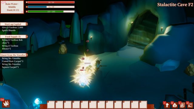 หลังจากที่เข้าที่เข้าทางแล้ว เราสามารถล่ามอนสเตอร์ได้ในถ้ำข้างบ้าน สามารถขุดหิน ขุดแร่ และล่าวัตถุดิบจากมอนสเตอร์ในถ้ำมาคราฟหรือทำเควส ปลดล็อคความสามารถต่างๆได้ ไม่ต้องห่วงว่าจะอ่านเควสไม่รู้เรื่องเพราะตัวเกมมีภาษาอังกฤษ (แต่พากย์เสียงจีนนะ)