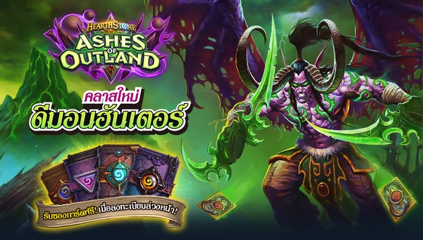ดีมอนฮันเตอร์และการ์ดคลาสดีมอนฮันเตอร์ใหม่จะเข้าสู่ Hearthstone ในวันที่ 8 เมษายน (ตามเวลาประเทศไทย) ควบคู่ไปกับการเปิดให้เล่น Ashes of Outland ซึ่งเป็นส่วนเสริมแรกของปี