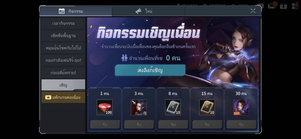 จริงๆแค่ชวน 8-15 คน รางวัลก็ถือว่าว้าวมากๆแล้ว… แต่ๆๆๆ! ถ้าชวนเพื่อนครบ 30 คน รับไปเลยจ้าาการ์ดสกิลตัวละคร ระดับ SSR ของ “เรจิน่า” ! แจกโหดเหมือนโกรธเกมจริงๆ และไม่ใช่แค่ผู้เล่นที่ชวนเพื่อนมาที่จะได้รางวัลเท่านั้นนะ! ผู้เล่นใหม่ที่สมัครมายังมีกิจกรรมล็อคอินแจกหนักจัดเต็มอีกด้วย! ตั้งแต่พลังงาน โกล์ดไปจนถึงตั๋วสุ่มสกิลกันเลยทีเดียว