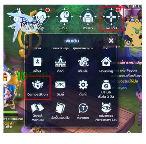 ไปที่เมนู “เพิ่มเติม” และ “Competition” เพื่อเข้าสู้โหมด PVP