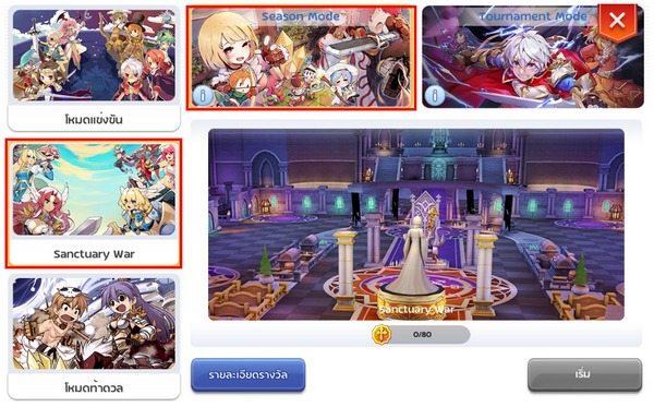 วิธีการเข้าร่วมการแข่งขันทั่วไป เลือก Sanctuary Wars และ Season Mode