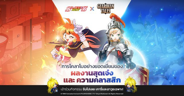 เรื่องราวในจักรวาลของ Slayers ถูกดัดแปลงและนำเสนอผ่านสื่อหลากหลายรูปแบบในช่วงหลายปีที่ผ่านมา Kakao Games และ Kong Studios ภูมิใจนำเสนอการหลอมรวมของแฟรนไชส์สุดฮิตกับโลกของ Guardian Tales เกม Action-adventure RPG ตะลุยดันเจี้ยนในโลกแฟนตาซีสุดมันส์ ที่เต็มไปด้วยกลิ่นอายของความคลาสสิกด้วยกราฟิกสไตล์พิกเซลสุดน่ารัก