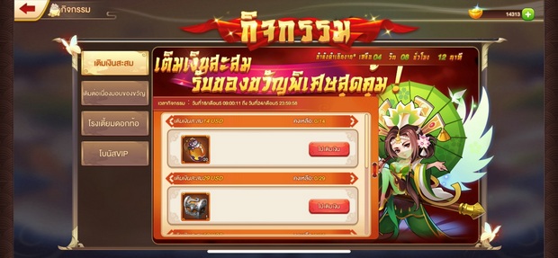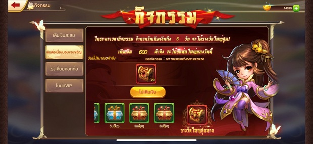 เพียงแค่เติมเงินครบ 600 ตำลึงทอง รับกล่องเศษขุนพลระดับ SSR ไปใช้งานได้เลย และเมื่อเติมสะสมครบ 5 วัน รับกล่องเลือกขุนพลระดับ SSR ไปเลย 1 กล่องฟรีๆ บอกคำเดียวว่าคุ้มกว่าเติมสุ่มขุนพลแน่นอน