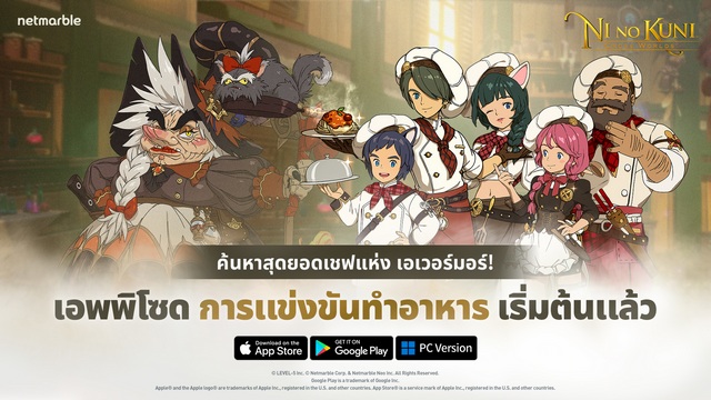 เน็ตมาร์เบิ้ล ผู้พัฒนาและให้บริการเกมมือถือคุณภาพสูงชั้น ได้ปล่อยอัปเดตใหม่ล่าสุดที่พร้อมให้ผู้เล่นได้สนุกสนานไปกับเอพพิโซดใหม่ ‘แข่งขันทำอาหาร’ ในเกม Multiplayer ออนไลน์สุดยิ่งใหญ่แนวสวมบทบาทตัวละครอนิเมะชื่อดังแสนน่ารักอย่าง Ni no Kuni: Cross Worlds โดยครั้งนี้ เหล่าโซลไดเวอร์ทุกท่านจะได้พบและเปิดประสบการณ์ไปกับคอนเทนต์ใหม่, กิจกรรม, และอื่น ๆ อีกมากมาย !
