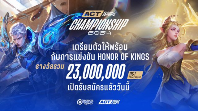 เตรียมตัวให้พร้อม! กับการแข่งขัน HOK หรือ Honor of Kings มาร่วมเก็บเกี่ยวประสบการณ์เพื่อเติมเต็มความฝันของคุณ ร่วมสัมผัสการแข่งขันสุดยิ่งใหญ่ที่จะจัดขึ้นตลอดทั้งปี กับรายการ ACT Esports Championship 2024 พร้อมชิงรางวัลรวมกว่า 23,000,000 ACT (Acet Coin) สมัครเข้าร่วมแข่งครั้งแรกรับทันที 1,000 ACT (Acet Coin) และชนะครั้งแรกรับเพิ่มอีก 500 ACT (Acet Coin)