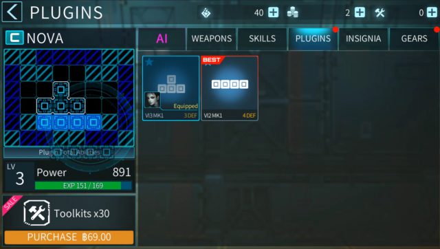 คนเล่นจะสามารถพัฒนาตัวละครได้ ทั้งการนำเงินไปอัพเกรดอาวุธ และการฝังชิปเพิ่มสเตตัสให้กับตัวละคร ที่แปลกใหม่นิดหน่อยก็คือ ตอนฝังชิบเข้าไปเพื่อเพิ่มสเตตัสนั้น จะมาเป็นเกมแนวพัชเชิลที่คนเล่นจะต้องวางให้ถูกตามตำแหน่ง (แบบในภาพ) ซึ่งจะทำให้คนเล่นมีข้อจำกัดในการหาของและต้องเลือกของให้ดีๆ นั่นเอง