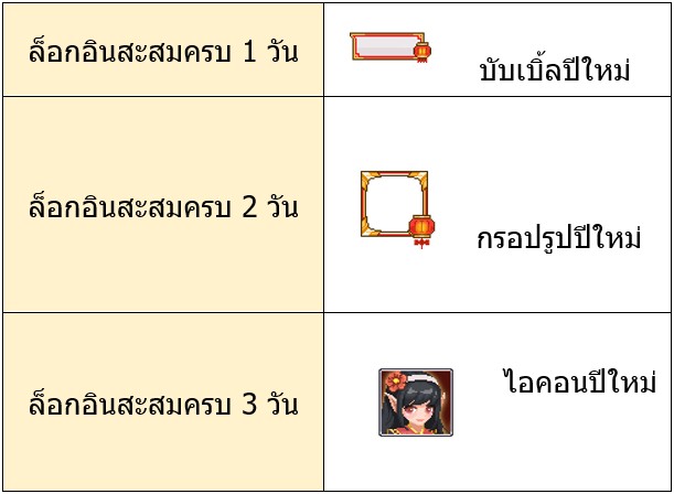 กิจกรรมที่ 1 – Happy New Year Login get Item