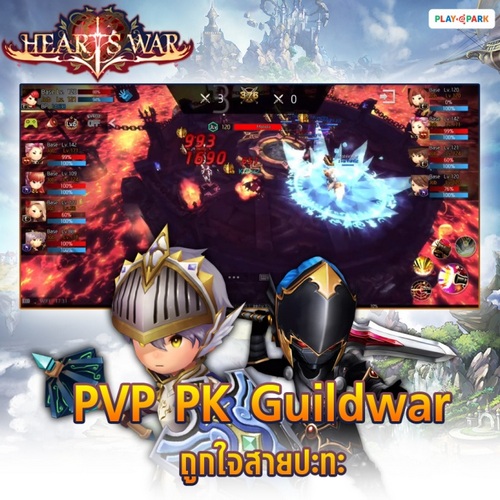 สายปะทะยกนิ้วโป้งให้กับสิ่งนี้ เพราะ HeartsWar เป็นเกมที่มีระบบ PVP หลายโหมด และแผนที่บางแผนที่สามารถ PK ได้อย่างอิสระด้วย รวมไปถึง Guild war มีให้เข้าร่วมกันแบบหัวอุ่นๆ แน่นอน