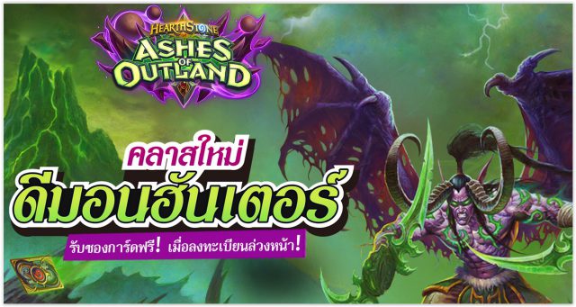 หลังจากที่มีเพียง 9 Class มาตลอดตั้งแต่เปิดเกม จนถึงปัจจุบันได้ก้าวสู่ปีที่ 6 Hearthstone ได้เปิดเผยส่วนเสริมล่าสุด Ashes of Outland ที่เป็นส่วนหนึ่งของเนื้อเรื่อง World of Warcraft ที่ตอนนี้กำลังถูกรุกรานโดยรัสเต็ดลีเจียน กองทัพที่เป็นเหมือนดั่งพลังที่กำลังทำลายล้างทุกสิ่งบนโลก เหล่าสิ่งมีชีวิตชั่วร้ายที่ถูกเสริมร่างกายด้วยจักรกลได้เข้ายึดพื้นที่บนโลกมากมาย ทิ้งแต่แดนร้างไร้ชีวิตเอาไว้เบื้องหลัง ปัจจุบัน เหล่าผู้อาศัยที่เหลือต้องพึ่งการเก็บซากเพื่อเอาตัวรอดในโลกที่แตกสลายนี้ แม้จะดูสิ้นหวัง แต่ก็ยังไม่หมดหวังเสมอไป วิหารทมิฬเป็นที่มั่นสุดท้ายของอารยธรรมในดินแดนที่ถูกทำลายโดยสงคราม และเป็นที่ที่อิลลิดัน สตอร์มเรจ ผู้สถาปนาตนเป็นเจ้าแห่งเอาท์แลนด์ใช้เป็นสถานที่เตรียมกองทัพดีมอนฮันเตอร์เพื่อชิงโลกของตนกลับคืนมา เดินทางผ่านประตูมิติมืดและเป็นผู้นำกองทัพที่จะช่วยกอบกู้เอาท์แลนด์ใน Ashes of Outland ส่วนเสริมใหม่ล่าสุดของ Hearthstone!