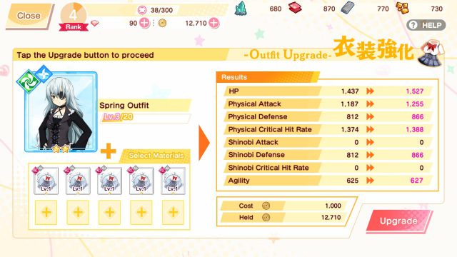 หากตัวละครโดนโจมตีหนักๆ เสื้อผ้าชุดนั้นๆ ก็จะขาด แน่นอนว่าก็จะเป็นเซอร์วิสเล็กๆ น้อยๆ ให้กับคนเล่น แต่ก็ต้องเอาเสื้อผ้าไปส่งซ่อมเพราะหากชุดพังก็จะเอาไปเล่นลำบากเนื่องจากค่าความแรงกับค่าความอึดจะลดลง ในเกมเองก็น่าจะมีชุดใหม่ๆ มาให้คนเล่นได้เลือกสะสม (จากการกดสุ่มหา) มาให้ได้เล่นกันเรื่อยๆ อีกด้วย เรียกได้ว่าเน้นชมความน่ารักของตัวละครอย่างเต็มที่