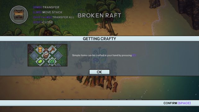 สำหรับการเล่นของเกมนี้ไม่มีอะไรซับซ้อน โดยเพียงนำอาวุธขวานหินไปกระเทาะต้นไม้ ต้นหญ้า ก้อนหิน เพื่อเก็บทรัพยากร แล้วกดปุ่ม C เพื่อคราฟ ซึ่งหากคราฟด้วยตัวเองจะสามารถคราฟได้แค่อุปกรณ์เบื้องต้นเท่านั้น เช่น ขวานหิน เชือก ค้อน และหากเราสร้างโต๊ะทำงาน Crafting Bench ก็จะสามารถสร้างไอเทมได้มากขึ้น อีกทั้งหากเราสร้างไอเทมตามแผนงานไปเรื่อยๆจะสามารถปลดล็อคไอเทมอื่นได้ด้วย และอย่าลืมว่าเราจะต้องหาอาหารมาประทังชีวิตด้วย โดยต้องก่อกองไฟก่อนจากนั้นนำวัตถุดิบพวก ผลไม้ และเนื้อ ที่เก็บได้ตามเกาะมาใส่เข้าไปแล้วปรุงอาหารออกมา