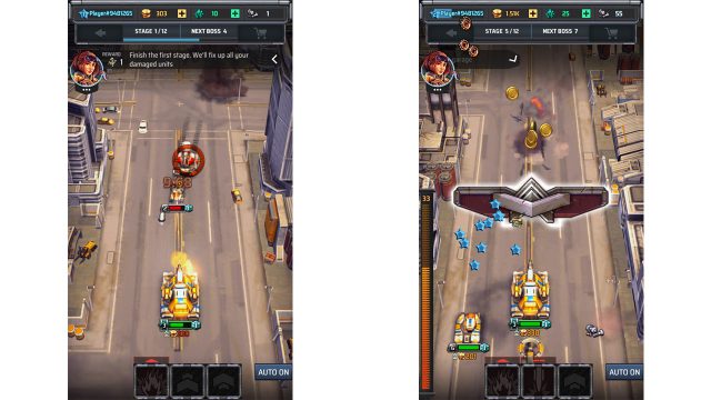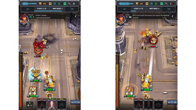 อย่างที่บอกไปว่าเกมนี้เรายังพอควบคุมทิศทางในการยิงได้ เกมก็จะมีแค่นั้น (สกิลจะกดเองหรือออโต้ก็ได้) ซึ่งจะทำให้คนเล่นสามารถผ่านด่านไวขึ้น โดยเฉพาะศัตรูที่มาหลายทิศทางหรือเราต้องการที่จะทำลายสิ่งปลูกสร้างเพื่อหาเหรียญมาอัพเกรด เพราะรถถังในทีมเราจะยิงแต่ศัตรูไม่สนใจสิ่งปลูกสร้าง
