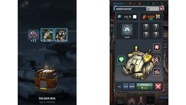 เกม IDLE ก็คือเกมที่ตัวละครจะโจมตีด้วยตัวเอง เก็บของเอง และคนเล่นจะต้องคอยอัพเกรดตัวละครให้เก่งขึ้นเพื่อผ่านด่านต่อไปได้เรื่อยๆ โดยปกติแล้วเรามักจะเห็นเกมแนวนี้เป็นเกมแนวตัวละครเสียส่วนใหญ่ แต่เกมนี้จะต่างออกไปเพราะว่าตัวละครที่เล่นนั้นจะเป็นยานพาหนะสงครามครับ