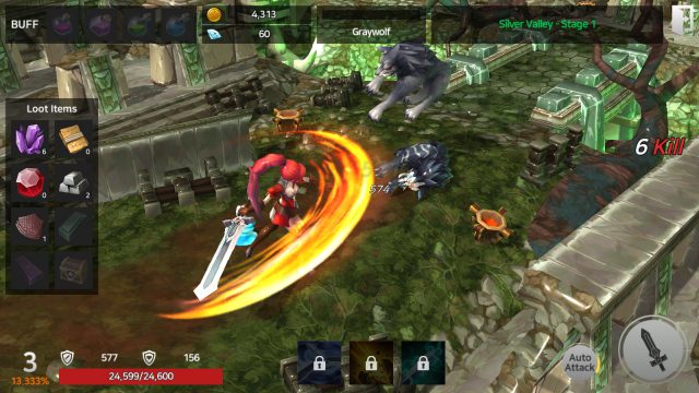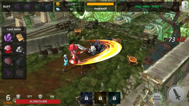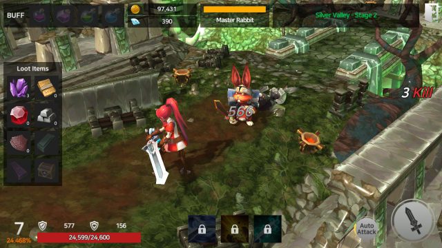 ง่ายๆ ก็คือ เมื่อคนเล่นได้มีการต่อสู้กับศัตรูแล้วก็ตีวนซํ้าๆ แบบนั้นไปเรื่อยๆ เป็นการฟาร์มเลเวลไปในตัว ซึ่งตัวละครจะยืนอยู่กับที่แล้วศัตรูก็จะเดินมาให้ตีทีละตัว และในการโจมตีแบบออโต้นั้นจะเป็นการโจมตีปกติเพียงๆ สกิลต้องกดเอง