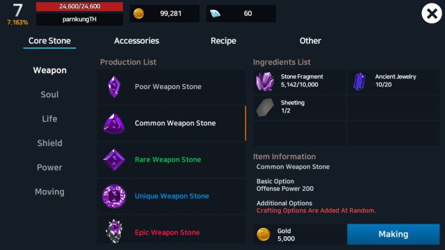 แต่ถึงจะเห็นว่าเกมมีแค่นี้แต่ระบบการพัฒนาตัวละครยังมีแตกย่อยออกไปอีก ทั้งการอัพสกิล ทั้งการคราฟต์ของที่คนเล่นจะต้องไปหาจากการเล่นปกติ รวมไปถึงการเข้าด่านไปฟาร์มของด้วย ซึ่งด่านฟาร์มนั้นก็ไม่เหมือนเกมอื่นเพราะจะไม่ได้ EXP ด้วย