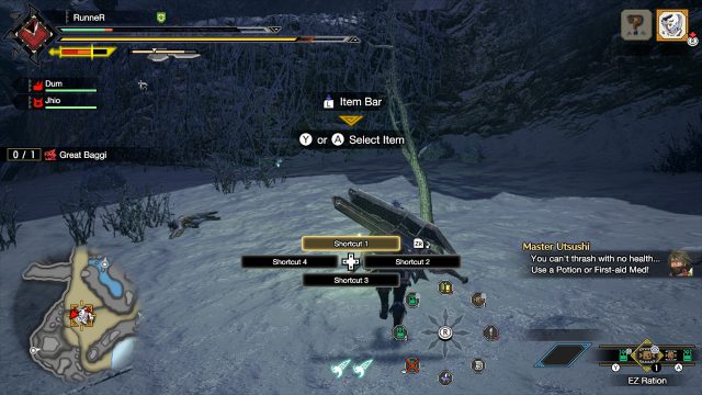 – Short Cut ไอเทมสำหรับสู้ : วิธีนี้จะสามารถเรียกใช้ไอเทมได้ทันทีโดยไม่ต้องกดเลือกหาไอเทมหรือเก็บอาวุธก่อน เพิ่มความสะดวกและใช้งานไอเทมง่ายขึ้น (รอดได้ง่ายขึ้นด้วย) วิธีคือกดปุ่มเมนูเลือก Radial Menu Settings > Quests เลือกนำไอเทมที่ใช้บ่อยๆมาใส่ใน Short Cut เช่น หินลับมีด ,ยา ,เนื้อ ,วางกับดัก ,ขี่หมา หรือการคราฟไอเทม วิธีใช้ Short Cut สำหรับการสู้คือกดปุ่ม L ค้าง แล้วเลื่อนอนาล็อคขวา ไปยังทิศทางที่จะใช้ไอเทม