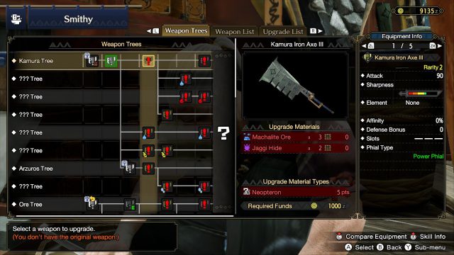 9. การเลือกอาวุธช่วงแรกให้เน้นที่พลังโจมตีสูงๆ และมีค่าความคมสีเขียวขึ้นไปก่อน ดูความยาวของความคมด้วย ยิ่งความยาวของความคมน้อยเราจะต้องลับมีดถี่ขึ้น ส่วนธาตุถ้ายังไม่ได้เน้นฆ่ามอนสเตอร์ตัวใดเป็นพิเศษก็เลือกอาวุธที่ไร้ธาตุไปก่อน ซึ่งจะมีการอธิบายในบทความถัดไปที่ละเอียดขึ้น
