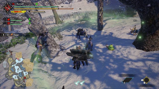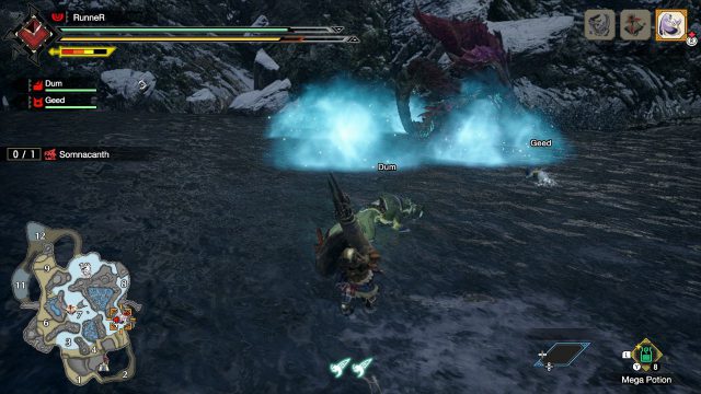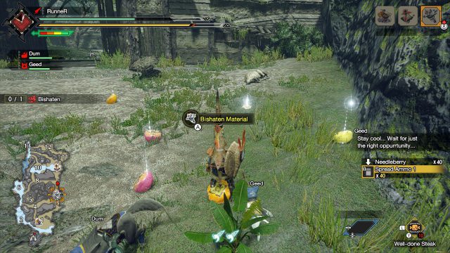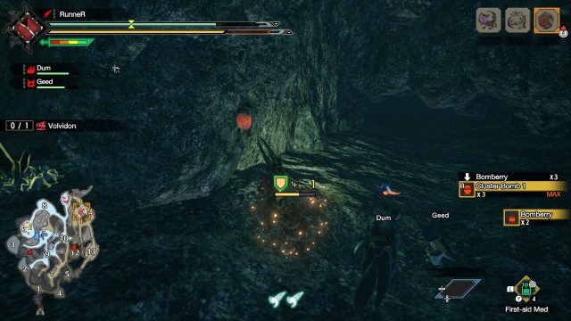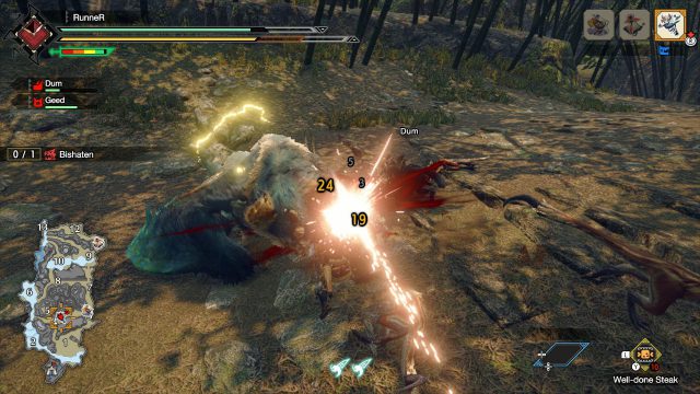 13. ค่า Stamina (หลอดสีเหลือง) คือค่าพละกำลังในการทำกิจกรรมบางอย่างเช่น วิ่ง ไต่เขา ใช้ท่าของบางอาวุธ หากมีน้อยนอกจากจะวิ่งได้นิดเดียว ยังใช้ท่าจากอาวุธได้ยากขึ้น การฟื้นฟูโดยกิน Ration หรือ เนื้อย่าง (Rare Steak/ Well-Done Steak) ซึ่งหาได้จากการนำ Raw meat มาย่างด้วย BBQ Spit แต่หากใครขี้เกียจย่างก็ไปหาร้านอาหารแมว Canteen เลือกคำสั่ง Motley Mix เพื่อขอให้ย่างเนื้อให้ก็ได้นะ