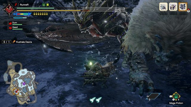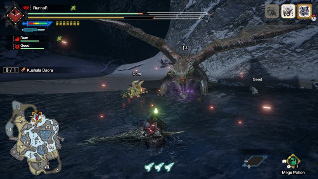 Kushala Daora มังกรเหล็กกล้า จำเป็นต้องมี HR ถึง 30 ก่อนจึงจะปลดเควส เจ้า Kushala นี้เป็นมังกรโบราณที่แข็งแกร่งสุดๆหนึ่งตัวเลยล่ะ ด้วยความที่มันสามารถโจมตีด้วยลม และเรียกพายุออกมาได้เกือบทั้งจอ จึงทำให้การโจมตีมันกว้างมาก อีกทั้งเวลามันโกรธจะเรียกลมเป็นบาเรียล้อมรอบตัวออกมา ใครอยู่ใกล้ๆจะปลิวออก และปีกที่แข็งมาก ทำให้ยากต่อการสู้ แต่หากใช้อาวุธพิษกับมัน เมื่อมันติดพิษจะปล่อยลมรอบตัวได้น้อยลง และใช้สกิล Mind’s Eye เพื่อกันฟันเด้ง จะทำให้สู้ง่ายขึ้น