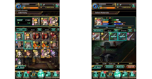การอัพเกรดตัวละครนั้นจะใช้อาวุธเพียวๆ โดยตัวละครจะสามารถสวมใส่อาวุธเพื่อเพิ่มพลังได้ อาวุธจะมีหลายเกรด ยิ่งดาวเยอะยิ่งทรงพลัง และอาวุธยังมีดรอปจากการเล่นโดยเฉพาะจากในอีเวนท์อีก นอกจากนี้อาวุธดาวล่างๆ จะสามารถใช้เป็นวัตดุย่อยเพื่ออัพเเลวลให้ตัวละครอีกด้วย เรียกได้ว่า 2 in 1 กันเลยทีเดียว