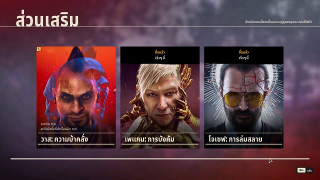 Season Pass จะมี 3 ตัวละครวายร้ายมาให้ได้เล่น โดยเวสจะมาเป็นคนแรกและพร้อมให้เล่นวันที่ 16 พฤศจิกายนนี้ ส่วน เพแกน (ภาค 4) จะมาในเดือนธันวาคม และโจเซฟ (ภาค 5) จะมาในต้นปีหน้า คนเล่นจำเป็นต้องมี SEASON PASS ราคา 1,070 บาทถึงจะสามารถเข้าเล่นได้ โดยเข้าเล่นได้ในตรง “ส่วนเสริม” ตรงเมนูเกม