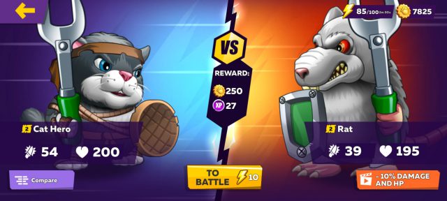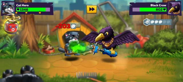 สำหรับ Cats Vs Aliens เกมนี้เราไม่ต้องบังคับให้ต่อสู้หรือโจมตีใดๆ ตัวละครจะทำการโจมตีเอง ตามอุปกรณ์ที่สวมใส่ กับคู่ต่อสู้บรรดาสิงสาราสัตว์มากมาย หมา หนู กระต่าย นก ซึ่งสัตว์แต่ละตัวก็จะถืออาวุธแตกต่างกันเหมือนกัน ทั้งช้อน ซ่อม ไขควง มีหั่นเนย หัวปลาทู กะทะ สารพัดอย่างที่จะหาได้ในบ้าน มาสูกันด้วยแอคชั่นสุดฮา