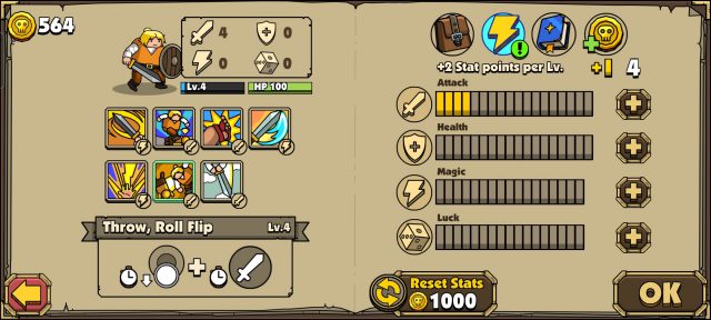 ตัวละครแต่ละตัวนั้นสามารถอัพเกรดความสามารถได้เมื่อ LV เพิ่ม โดยสามารถอัพ พลังโจมตี เกราะ พลังเวทย์ และ ค่าความโชคดีได้ ส่วนสกิลนั้นจะค่อยๆโผล่ขึ้นมาเองตาม LV (เข้ามาดูวิธีกดสกิลได้ ที่หน้า Status) และยังมีท่าไม้ตายด้วย