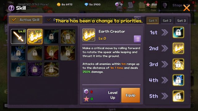 เกมนี้จะสามารถพัฒนาตัวละครหลักโดยการอัพเลเวลสวมใส่อุปกรณ์และการอัพเกรดสกิลโดยจะสามารถเลือกสกิลในการใส่ได้และจะปลดล็อคใส่สกิลได้ทั้งหมด 5 ช่องรวมไปถึงจัดเซตรูปแบบสกิลได้ถึง 3 เซต