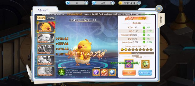นั่นเพราะตัวเกมจะมีระบบคอยช่วยเหลืออัพเกรดให้คนเล่นเป็นระยะไม่ว่าจะเป็นการอัพเกรดสัตว์ขี่ สัตว์เลี้ยง ปีก รวมไปถึงการอัพเกรดอุปกรณ์และสกิลที่จะสามารถเพิ่มพลังได้ในปุ่มเดียว ทุกอย่างของเกมออกแบบมาให้เล่นอย่างง่ายดายโดยที่คนเล่นไม่จำเป็นต้องคอยใส่ใจหรือต้องคอยมองหาอุปกรณ์ที่ดีที่สุดใส่ให้คนเล่นเลย เพราะระบบของเกมจะคอยเพิ่มคุณภาพของอุปกรณ์ให้คนเล่นได้ใช้กันเป็นระยะ