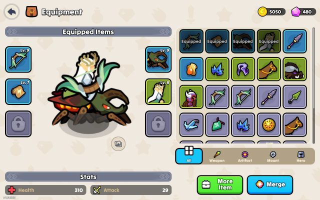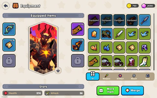 การอัพเกรดเกมนี้หลักๆจะอยู่ที่ Research และอุปกรณ์ โดย Research จะปลดล็อคฐานและปรับปรุงความสามารถฐาน เช่น เพิ่ม HP ปลดล็อคยูนิต โดยจะต้องนำดาวที่ได้จากการผ่านด่านมาปลดล็อคแล้วใช้เงินอัพเกรด ซึ่งมีความสำคัญมากไม่งั้นเราจะปลดล็อคยูนิตหรือฐานที่แข็งแกร่งออกมาไม่ได้ ส่วนการอัพเกรดอุปกรณ์ จะนำอุปกรณ์ที่ซ้ำกัน 3 ชิ้น มา merge แล้วจะได้อุปกรณ์ที่เกรดสูงขึ้น ซึ่งจะปลดล็อคความสามารถพิเศษมากขึ้นอีกขั้น นอกจากนี้ก็ยังนำอุปกรณ์ไปอัพ LV ได้ด้วยทอง และสัตว์ขี่ซึ่งจะเน้นไปที่ความสามารถในการเคลื่อนที่ และอุปกรณ์เสริมจะช่วยเพิ่มโล่หรือช่วยโจมตีแบบพิเศษ