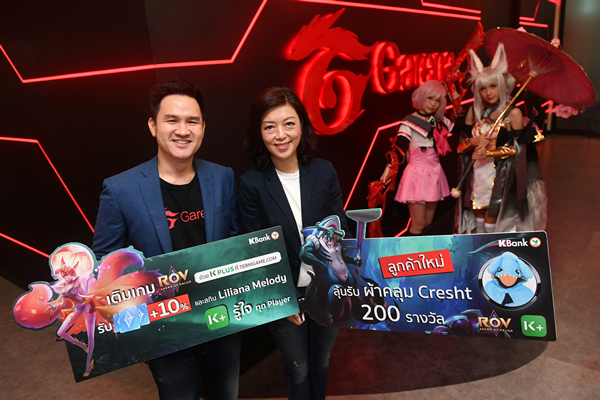 นางกิติยา ฤกษ์ภูริทัต ผู้ช่วยกรรมการผู้จัดการ ธนาคารกสิกรไทย กล่าวว่า “ความร่วมมือกับการีนาทำให้ธนาคารมีโอกาสในการเข้าถึง และอำนวยความสะดวกให้กับกลุ่มลูกค้าเกมเมอร์ ซึ่งเป็นตลาดที่ขยายตัวอย่างรวดเร็ว โดยเปิดให้บริการเติมเงินเกมของการีนาผ่าน termgame.com ด้วย K PLUS และเติมเงินด้วยบัตรเครดิตและบัตรเดบิตของธนาคารกสิกรไทยเข้า AirPay เพื่อใช้เติมเงินเกมของการีนา เป็นการตอบรับกับไลฟ์สไตล์ของลูกค้ากลุ่มนี้ที่คุ้นเคยกับการใช้ดิจิทัล เทคโนโลยี พร้อมกันนี้ธนาคารได้ให้การสนับสนุนการแข่งขัน RoV Pro League Season 4 ซึ่งเป็นการแข่งขันอีสปอร์ตที่ใหญ่ที่สุดในประเทศไทย และประสบความสำเร็จอย่างสูงใน 3 ฤดูกาลที่ผ่านมา เป็นการผลักดันให้เยาวชนไทยพัฒนาฝีมือสู่ระดับมืออาชีพ เพิ่มโอกาสสร้างชื่อเสียงในเวทีระดับโลกได้ในอนาคต”