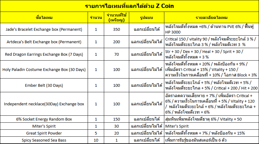- ไอเทม Z Coin สามารถนำไปแลกเปลี่ยนเป็นไอเทมของรางวัล Colosseum ได้ที่ NPC – Brand แผนที่ Ardeca