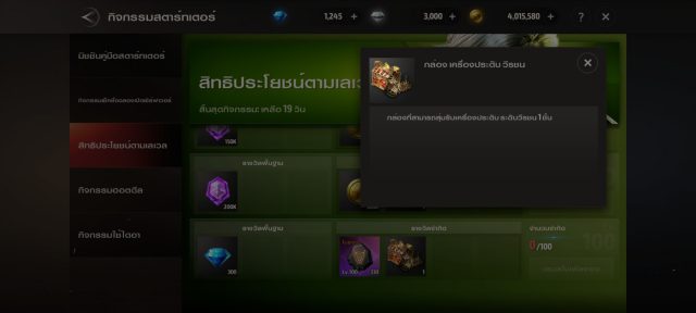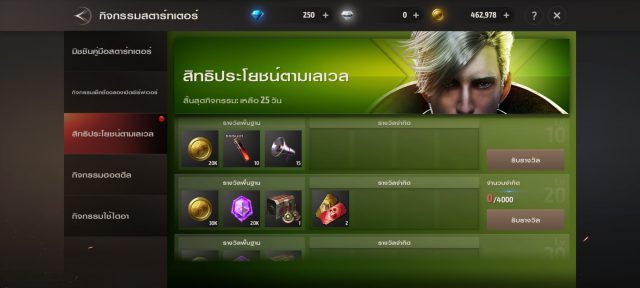 ในช่วงที่มีกิจกรรมเปิด Server จะมีกิจกรรมพิเศษอย่าง คู่มือสตาร์ทเตอร์ สิทธิประโยชน์ตามเลเวล