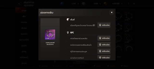 เราสามารถดูแผนที่ที่ได้รับอุปกรณ์ต่างๆได้จากเมนู กิจกรรม>สมุดภาพอุปกรณ์ เลือกอุปกรร์ที่ต้องการแล้วไปดูวิธีได้รับ