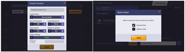 – เมื่อสร้างแมทช์กระชับมิตรแล้ว ผู้จัดการแข่งขันสามารถเลือกแชร์การแข่งขันนั้นไปยังช่องแชทธรรมดาหรือช่องแชทสมาพันธ์ได้ และซัมมอนเนอร์ท่านอื่นสามารถเข้าสู่การแข่งขันนั้นได้โดยการคลิกลิงค์ที่แชร์