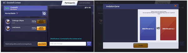 – หลังจากเข้าสู่แมทช์กระชับมิตร คุณสามารถเลือกส่งคำเชิญต่อสู้ให้ซัมมอนเนอร์ท่านอื่นที่เข้าร่วม หรือเลือกใช้แมทช์ด่วนเพื่อให้จับคู่ซัมมอนเนอร์ที่เข้าร่วมทั้งหมดได้อย่างรวดเร็ว