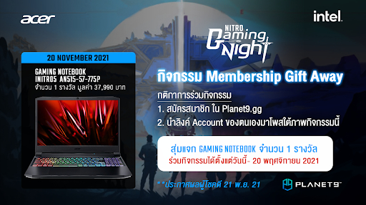 รายละเอียดของรางวัล : Gaming Notebook รุ่น Nitro5 AN515-57-775P จำนวน 1 รางวัล