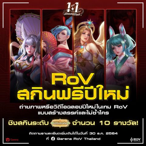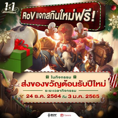 ชวนชาว RoV มาตีป้อมรับปีใหม่ เพียงถ่ายภาพหรือวิดีโอภายในเกม ที่แสดงถึงการฉลองปีใหม่ในเกม RoV แบบสร้างสรรค์ไม่ซ้ำใคร ผู้ชนะ 10 ท่าน จะได้รับรางวัลเป็นสกินระดับ Ultimate กิจกรรมจะเริ่มต้นขึ้นตั้งแต่วันที่ 30 ธันวาคม 2564 เป็นต้นไป รอติดตามรายละเอียดกิจกรรมได้ที่ Facebook Fanpage: Garena RoV Thailand