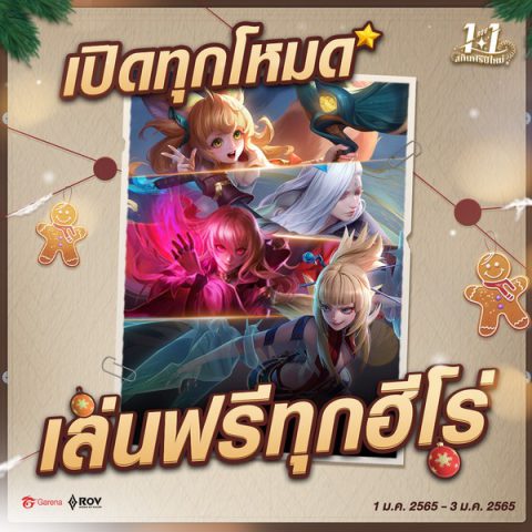 เตรียมมาตีป้อมกันข้ามปีแบบไม่มีสะดุด เพราะ RoV เปิดให้เล่นฮีโร่ฟรีทุกตัว และเปิดให้เข้าเล่นได้ทุกโหมด มาสนุกกันในเกมได้ตั้งแต่วันที่ 1 มกราคม 2565 – 3 มกราคม 2565