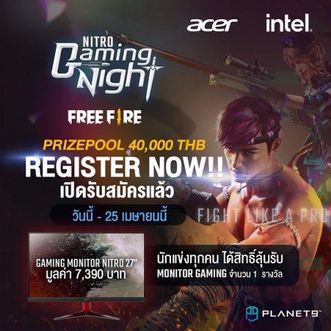 Garena Free Fire เปิด รับสมัคร แข่งขันแล้ว!! ตั้งแต่ วันนี้ – 25 เม.ย. ปีนี้ ในทัวร์นาเมนต์ Nitro Gaming Night 2022 ศึกสำหรับเหล่าผู้เล่นมือใหม่ที่จัดโดย Acer Gaming Thailand x INTEL ณ แพลตฟอร์ม Planet9.gg