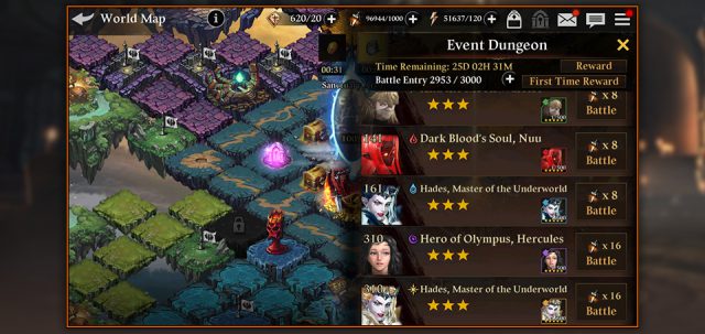 เพิ่มดันเจี้ยนกิจกรรมใหม่ที่มาพร้อมกับบอสแปดตัว รวมถึง ฮาเดส และ เฮอร์คิวลีส บริวารใหม่! การันตีรับ บริวาร 5★ 7 ตัวเมื่อฆ่าบริวารศัตรูในแต่ละชั้นได้