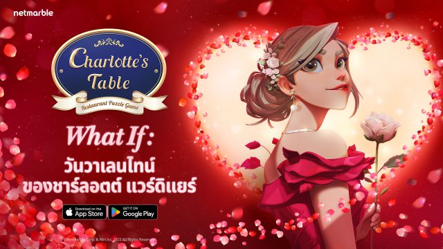กรุงเทพฯ, ประเทศไทย (วันที่ 1 กุมภาพันธ์ พ.ศ. 2566) – เน็ตมาร์เบิ้ล ได้ปล่อยอัปเดตเฉลิมฉลองเดือนแห่งความรักวาเลนไทน์แสนหวานชื่นใหม่สำหรับเกมพัซเซิล Match-3 สุดเพลินอย่าง Charlotte’s Table โดยครั้งนี้ผู้เล่นจะได้สัมผัสความเพลิดเพลินแบบเต็มอิ่มไปกับคอนเทนต์ที่มาใน ธีมฮอลิเดย์ใหม่, หลากหลายกิจกรรมความสนุก, และอื่น ๆ อีกมากมาย ภายในช่วงเวลาแสนพิเศษนี้เท่านั้น ห้ามพลาด !