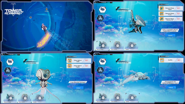 นอกจากแผนที่ใหม่แล้ว จะมีการเพิ่ม พาหนะใต้น้ำ 3 แบบ ลงไปในแผนที่ใหม่ ได้แก่ ปีกไดมอนด์, วิชั่นสเฟียร์ และ ปลาพระอาทิตย์ พาหนะเหล่านี้จะช่วยให้นักพเนจรไปถึงจุดหมายได้เร็วกว่าการดำน้ำตามปกติ