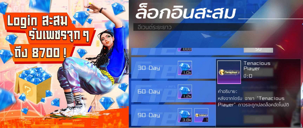 ล็อคอินสะสมวันนี้ รับเพชรฟรีจุก ๆ ถึง 8700 เพชร พร้อมฉายาพิเศษ!