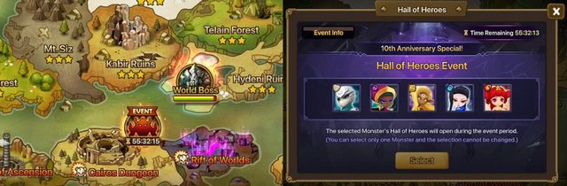 กิจกรรมจะจัดทั้งหมด 24 สัปดาห์ และ สิ้นสุดในวันที่ 25 สิงหาคม เมื่อเคลียร์โถงฮีโร่แล้ว ผู้เล่นสามารถเลือกมอนสเตอร์ได้ 1 ตัวจากทั้งหมด 5 ธาตุ (ได้แก่ไฟ น้ำ ลม แสง มืด) เพื่อรับชิ้นส่วนคัมภีร์ โดยมอนสเตอร์จะเปลี่ยนทุกสัปดาห์ไม่ซ้ำหน้า ใครยังไม่มีมอนสเตอร์ตัวไหนหรืออยากซัมมอนตัวเดิมซ้ำ นี่คือโอกาสของคุณ!