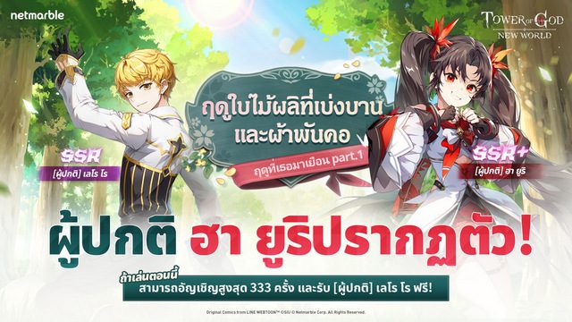 กรุงเทพฯ, ประเทศไทย (วันที่ 27 มีนาคม พ.ศ. 2567) – เน็ตมาร์เบิ้ล ผู้พัฒนาและให้บริการเกมมือถือคุณภาพสูงชั้นนำ ได้ปล่อยคอนเทนต์และอัปเดตใหม่สำหรับเกมแนว Collectible RPG อย่าง Tower of God: New World เริ่มต้นวันนี้ ผู้เล่นสามารถสัมผัสความสนุกไปกับ เพื่อนร่วมทีมใหม่, คอนเทนต์เนื้อเรื่อง, กิจกรรมสุดพิเศษ และ อีกมากมาย!