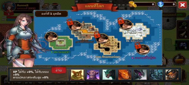ในแผนที่โลกจะถูกแบ่งออกเป็นเกาะ โดยหากยังไม่สามารถปราบบอสของเกาะได้ก็จะยังไม่สามารถไปเกาะต่อไปได้ เข้าใจง่ายดีไหมล่ะ โดยแผนที่ในแต่ละเกาะจะถูกแบ่งเป็นโซนได้แก่ I , II , III และ IV หมายถึงความแข็งแกร่งของมอนสเตอร์ เมื่อเราเดินในพื้นที่จะมีเกจการปรากฎตัวของมอนสเตอร์ยิ่งเกจสูงก็จะมีโอกาสเจอมอนสเตอร์ ดังนั้นเวลาปะทะกับมอนสเตอร์ควรเลือกในโซนที่ตัวเองสู้ไหว แน่นอนว่ายิ่งโซนระดับสูงจะยิ่งได้ EXP ที่มากและโอกาสดรอปไอเทมสูง แต่ว่ามอนสเตอร์ก็โหดตาม