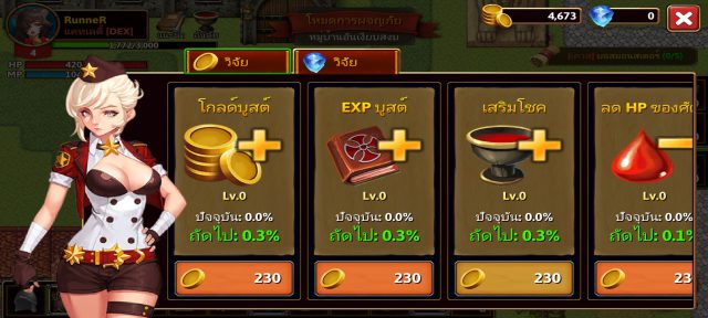 อย่าลืมอัพเกรดกระเป๋าซื้อโพชั่น ทำให้สามารถซื้อโพชั่นได้เยอะขึ้น เพราะการต่อสู้ที่อยู่ในระหว่างดันเจี้ยนไม่สามารถฟื้นฟู HP อัตโนมัติ การใช้โพชั่นจึงจำเป็นอย่างมาก หรือหามอนสเตอร์ที่เน้นดอกเดียวตายจะช่วยประหยัด Hp ไปได้เยอะ นอกจากนี้ก็อย่าลืมวิจัยเพื่อเพิ่มประสิทธิภาพของตัวละคร เช่นพวก เพิ่ม Gold , เพิ่ม EXP ที่ได้รับ เสริมโชค หรือลด HP ของศัตรู ซึ่งจะต้องใช้ Gold ในการอัพเดท เหล่านี้จะช่วยให้เราแข็งแกร่งขึ้นได้มาก