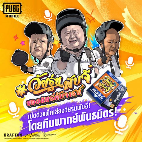 18 เมษายน 2024, PUBG MOBILE เกมแนว Battle Royale บนมือถือที่ได้รับความนิยมทั่วโลกจาก LEVEL INFINITE เปิดตัวแพ็คเสียงใหม่ เอาใจวัยรุ่นชาวไทย กับการผสมผสานประโยคไวรัลยอดฮิตติดปากตามเทรนด์วัยรุ่น เข้ากับเสียงในเกมแบบลงตัวกับแพ็คเสียง ‘วัยรุ่นพับจี๋’ นำทีมพากย์โดย ‘พันธมิตร’ มาทั้ง อาเกรียง เกรียงศักดิ์ เหรียญทอง, อาติ่ง สุภาพ ไชยวิสุทธิกุล และ อาโต๊ะ ปริภัณฑ์ วัชรานนท์ ที่มีผลงานการพากย์ตราตรึงในดวงใจคนไทยมายาวนาน โดยตัวแพ็คเสียง ‘วัยรุ่นพับจี๋’ จะมี ทั้งแบบแจกฟรี และ แบบเปิดให้จับจอง ในเกมเพิ่มเติม กว่า 30 เสียง มั่นใจเลยว่าแต่ละไลน์เสียงนั้นคุ้นหูทุกคนอย่างแน่นอน!